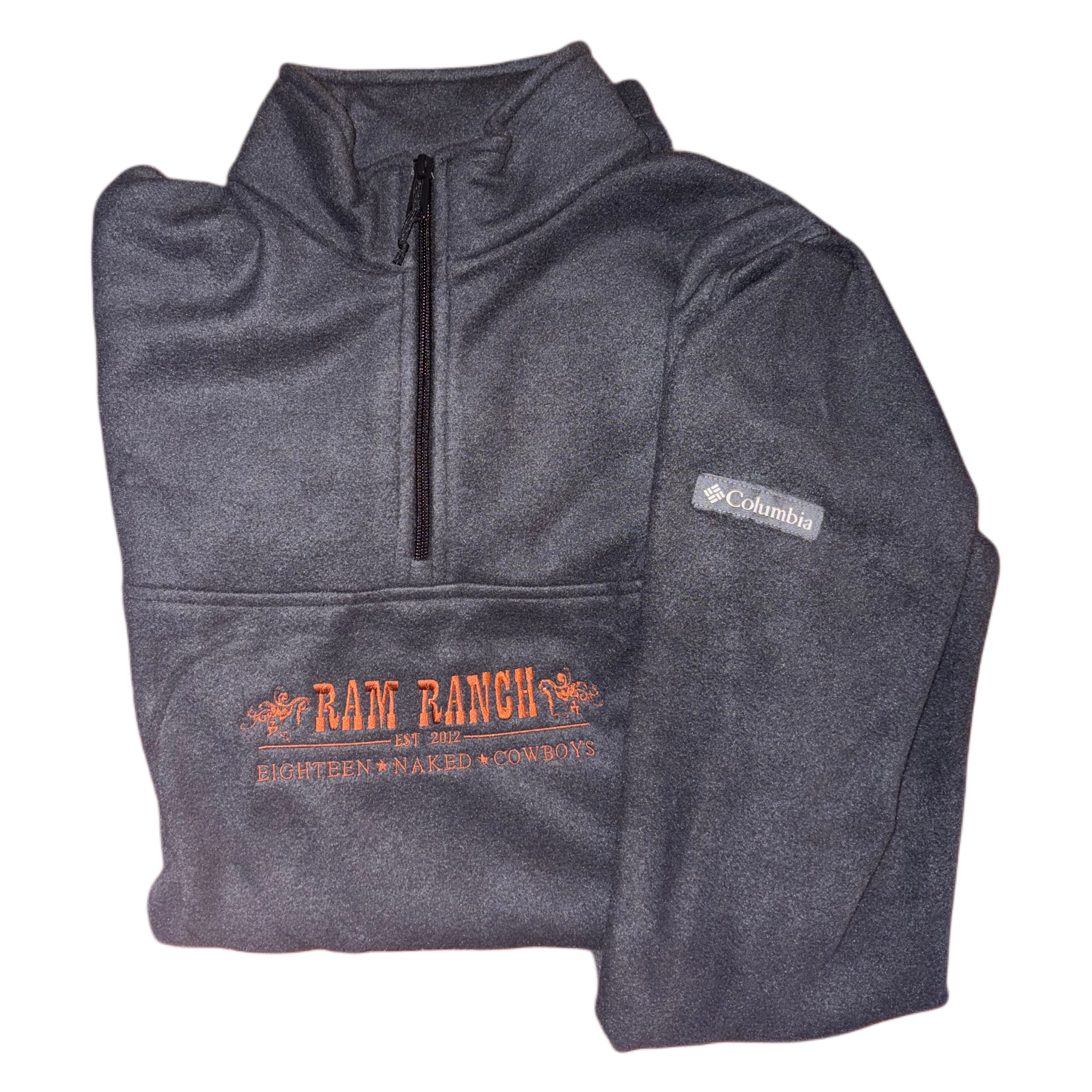 This is a Ram Ranch embroidered Columbia Quarter-Zip Fleece Sweatshirt.